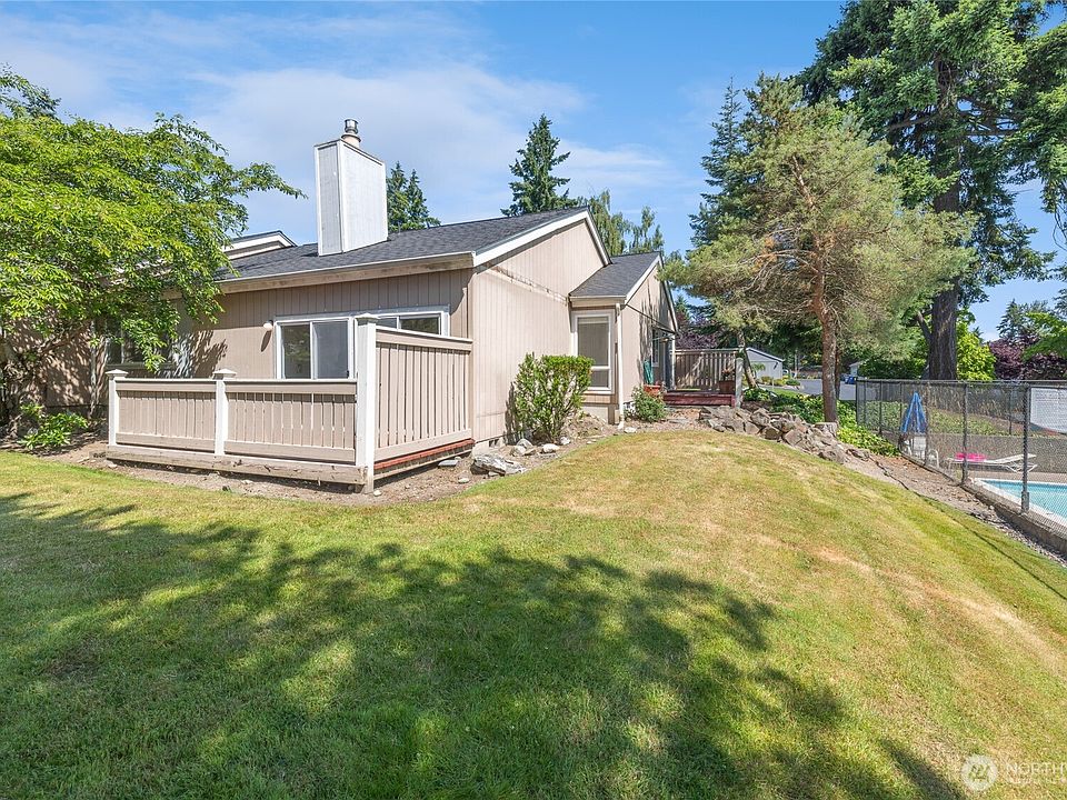 Tucked within the serene Quail Run community, this rare single-story end-unit condo offers a private estate-like retreat with lush grassy area on three sides and pool views from your two private decks. Freshly painted interiors and new carpeting complement an open-concept living space with soaring vaulted ceilings that bathe the home in natural light. The spacious primary suite features a walk-in closet and 3/4 bath, complemented by the convenience of a 2-car garage. Residents enjoy exclusive access to the clubhouse, sparkling community pool, and beautifully maintained grounds. Major community updates have been completely for worry free living making this gem an ideal blend of comfort and convenience. Close to local shops, dining, and parks