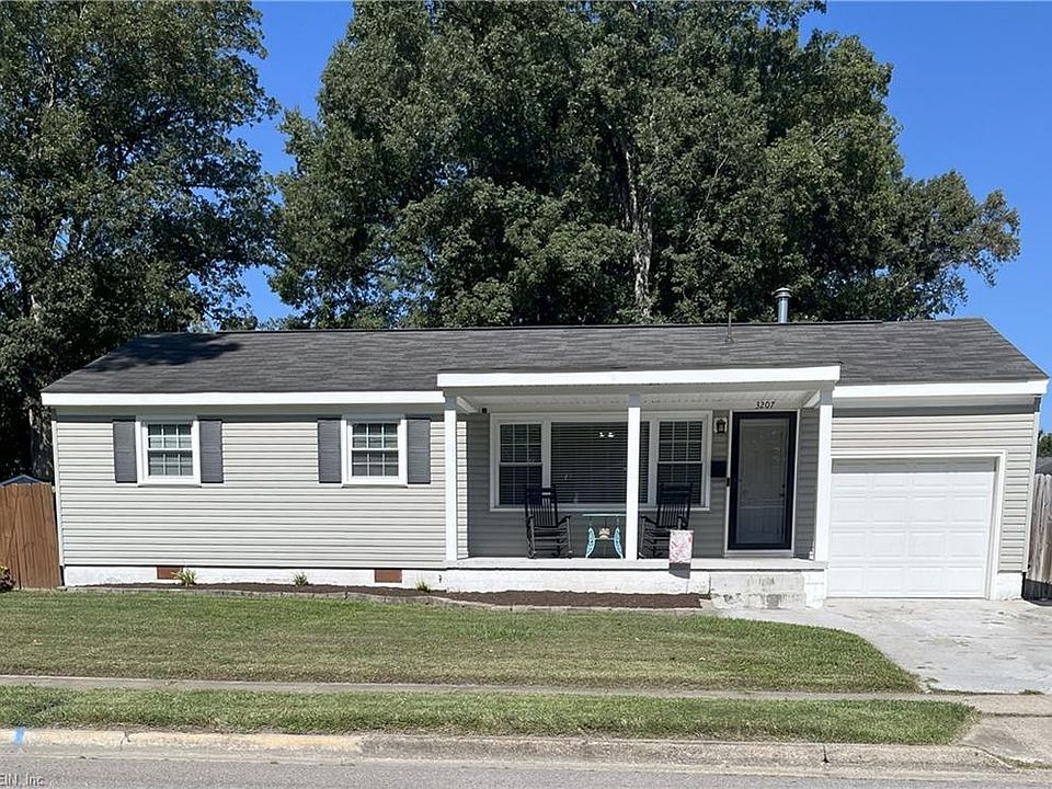This well maintained ranch is tucked away in a quiet section of the neighborhood. Interior has been freshly painted, new carpet, and new countertops in the kitchen. Large backyard with cement patio with overhang for cookouts. Exterior of home is all maintenance free. Large front porch to enjoy anytime of the day.