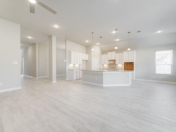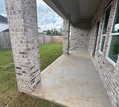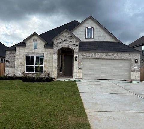 This stunning 1-story new construction home offers 3 spacious bedrooms, 3 full bathrooms, and a 2-car garage across 2,586 square feet of thoughtfully designed living space. The open-concept layout features wood-look tile flooring throughout all common areas, adding warmth and durability. Enjoy the elegance of a 4-sided brick exterior and the convenience of built-in stainless steel appliances in the chef-inspired kitchen. The private study with French doors is perfect for remote work, while the luxurious primary suite boasts a spa-like freestanding tub. Relax outdoors under the covered patio—ideal for entertaining or quiet evenings. Located in a vibrant community with a low tax rate, pool, and just minutes from I-45 for easy commuting.