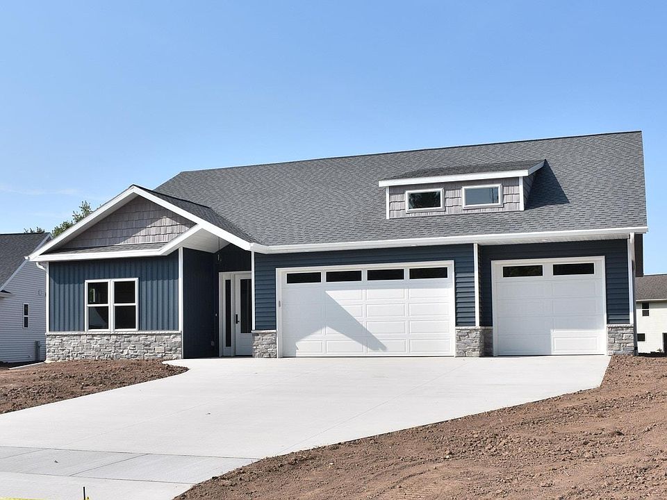 Welcome to this beautiful, well built, zero entry, open concept 3 Bed/2.5 Bath home. Front entry is a grand 8ft tall door w/side lite. Primary suite features a wood tray ceiling, tiled shower, trough sink for two, and large walk-in-closet connected to the laundry room. The other 2 bedrooms also have tray ceilings w/a divided bathroom to share. Sound insulation will help keep things quiet. Kitchen has a large 7ft quartz island suitable for all your cooking needs with a big pantry. Living room styles a corner gas fireplace with access to a rear covered porch so you can enjoy the large backyard. Get plenty of fresh air with double hung windows (easy to clean). Lower level is roughed in for a future full bath and bedroom with egress window. Many upgrades. $1500 Allowance for closets.
