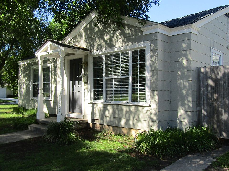 Charming bungalow sitting on a pristine corner parcel surrounded by mature trees, walking distance to school. The kitchen has been updated with center island prep station, ceramic tile back splash, period cabinetry and gas cook top. There is a breakfast bar for casual dining, along with a separate breakfast room off the kitchen. Three spacious bedrooms and two full baths in the main house. The property enjoys a second residence above the garage with full bath, kitchenette and laundry. This could be utilized as a home studio or rental apartment to offset your mortgage. The apartment has vaulted ceilings and wraparound balcony. Wonderful fenced in backyard providing for privacy and safety for children and pets.