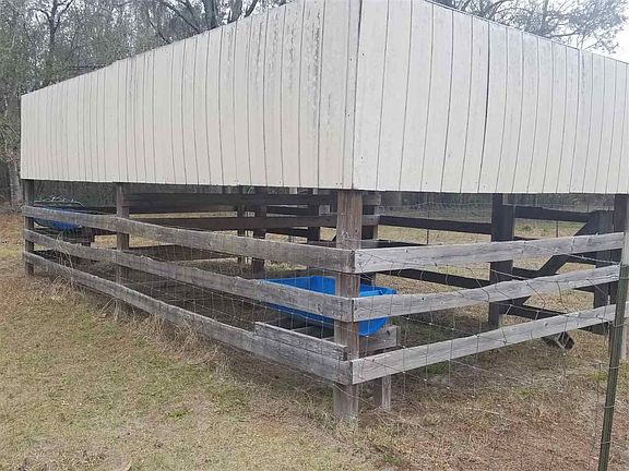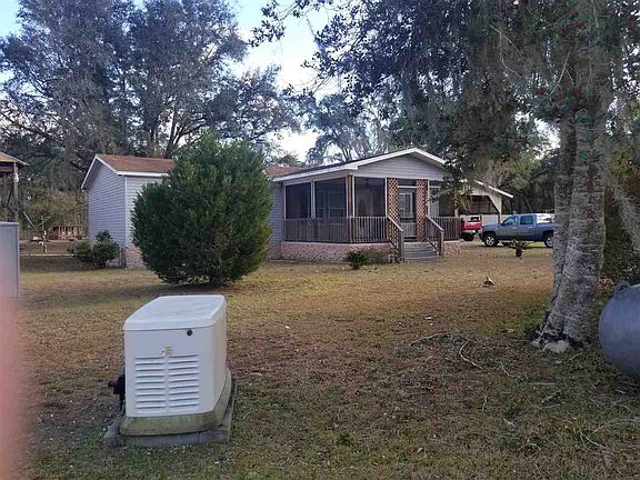 Pristine mobile home with 3 bedrooms and 2 baths. Open floor plan and split bedroom plan. Delightful beach colors with so may amenities. A family's outdoor dream with 5 acres, screened front and back porches, covered walkway into the back porch for grocery carrying and is handicap accessible with a 4 ft. entry door. The property is set up for horses and has a pole barn, plus a pole barn built carport. Generac generator and propane tank full of propane for difficult weather, and 2 outbuildings. 1 for storage and a man cave, containing the pump and well. This is just the complete set up, completely fenced and gated, don't take your time to look. This is the home you've been looking for.