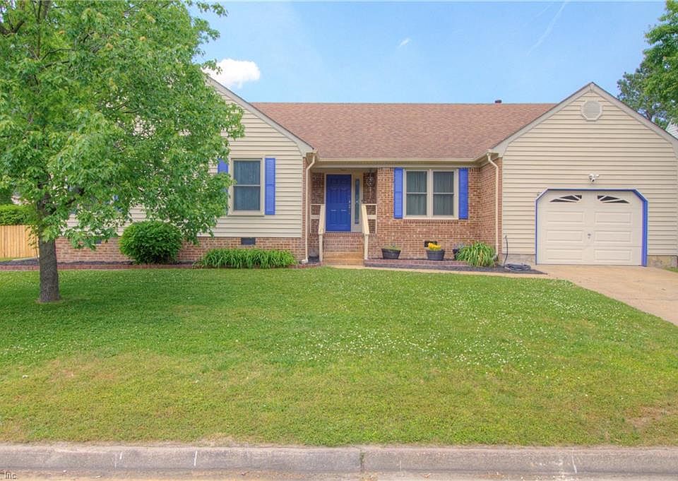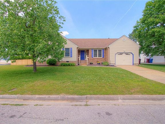 This lovely 4 bedrooms 2 baths home is on a cal-de-sac in a great neighborhood in the heart of Deep Creek area of Chesapeake. This fenced-in corner lot provides a spacious back yard that features a large wooden deck for family fun and entertaining. Inside, the family room opens up to Cathedral ceilings and nestled around a cozy wood-burning fireplace with all the comforts of a home. New carpet and fresh paint makes it move-in ready! Finished room over the garage is awesome for a game room, office, or "man cave". Nice storage shed is as-is. Home comes with a 1 year home warranty. Great home to raise a family, entertain, and create a lifetime of memories.