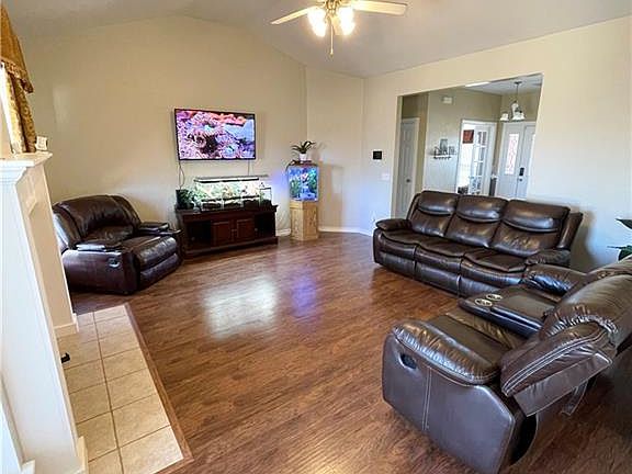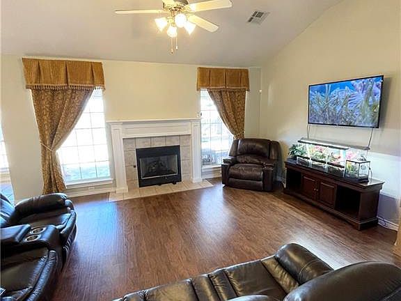 This split floor plan home is the perfect home for you. This home has endless curbside appeal. You will love the vaulted ceilings consistent throughout. The living room, dining room, and kitchen are open creating an open concept layout. The gas fireplace in the living room is gorgeous and fully functional. All of the kitchen appliances will stay. Each bedroom is spacious and has walk in closets. The master bedroom is complete with vaulted ceilings, a large on suite bathroom, jacuzzi tub, shower, double vanities, and a huge walk-in closet. There is a reverse osmosis water system installed in the kitchen. There is a two-car garage complete with a storm shelter. There is a fully functioning sprinkler system in the front and backyard. The backyard is privacy fenced. The storage shed in back will stay. You will love the updated Nest thermostat and Vivint security system all of which will stay with the home. This home is a must see.