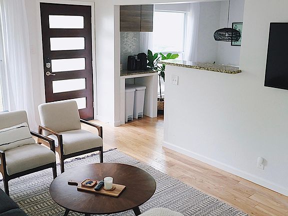 Bright and airy freshly renovated and newly furnished home with the comfort of a modern space and the charm of quiet neighborhood. Wood flooring spanning the open concept kitchen and living room, decorated with local art and pieces from around the world. Plenty of outlets, a desk, kitchen nook and fast wifi make for great work spaces!