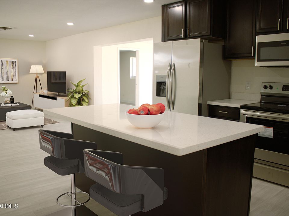 Beautifully remodeled home featuring an open-concept layout, modern finishes, and plenty of natural light! The upgraded kitchen boasts espresso cabinets, quartz countertops, stainless steel appliances, and a large island with seating, perfect for entertaining. Enjoy two spacious living areas plus a flex room that can be an office, spare bedroom or work out room.