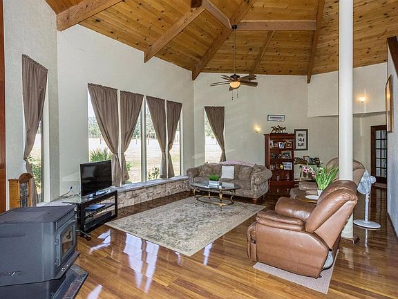 Home Sweet Home in the Hills. Come enjoy country living in Coarsegold, in this Beautiful and Unique home on just over an acre complete with horse pasture. Walk in the front door and be amazed at the beauty of the cathedral ceiling in the living room which has a brand new pellet stove to ward off those chilly winters. This lovely 3 bedroom, 2.5 bath home is complete with a loft and balcony that overlooks the backyard. Built in china cabinet in the Dining area, upgraded kitchen, indoor laundry. Three car garage with RV access and additional circle driveway. Wood laminate floors that shine like glass along with tiled kitchen, laundry and bathrooms. Bedrooms are carpeted. You won't be disappointed.
