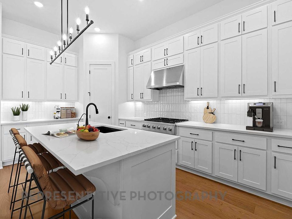 - Features: Kitchen Island, Quartz Counters, Gourmet Kitchen, Open to Family Room, Pantry, Recessed Lighting