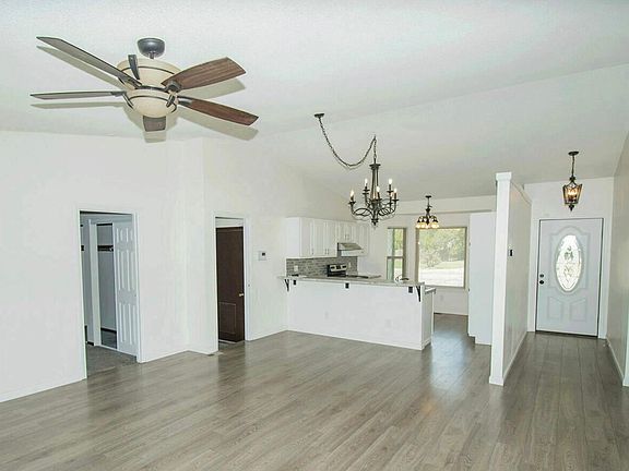 When you step inside, you are greeted with a grand open-concept living space, with vaulted ceilings, and includes the living room, kitchen, and dining space. The primary bedroom is separate and features an ensuite bathroom with a standup shower and a walk-in closet. Two more bedrooms and a full bathroom with a shower/tub combination complete the main floor.