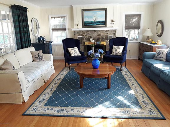 Beautiful colonial offers a breathtaking staircase that welcomes you home as you enter this 6 bedroom W/master suite on 1st floor with 2 large closets. Could also be used as in-law suite. It has a side entrance that leads into a mudroom & den. 4 baths,2 sided gas fireplace located in family room and dining area with overwhelming kitchen with double oven,2 sinks perfect for entertaining. French doors leading out to a heated saltwater pool, fire pit, new trek decking, screened in gazebo,75ft dock,fenced yard, outdoor shower. Inside beautiful hardwood floors throughout,2 zone heating and A/c unit,2 laundry closets on each floor for convenience. Upstairs has 2 bedrooms with a Jack and Jill bathroom that has French doors that leads out to a large balcony overlooking the yard and Manasquan River