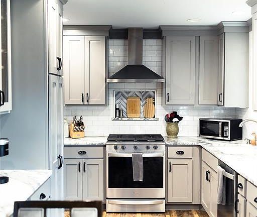 Step into the spacious sunken living room featuring a cozy fireplace—perfect for relaxing or entertaining. The kitchen was fully gutted and remodeled in 2019, complete with a stylish sliding door that leads to the privacy-fenced backyard. During the renovation, new insulation was also added around that area for extra efficiency.