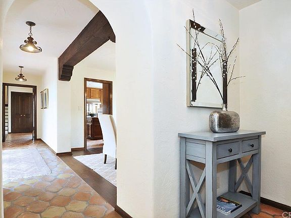 This charming Spanish home on a prestigious Valmonte street is located in the highly coveted Palos Verdes school district. With 3 bedrooms plus a bonus room, and European details throughout, this home is in move-in condition. The open lower level wraps around a central courtyard with multiple glass doors opening to the fountain and seating area, providing easy, indoor-outdoor living. Features on this level include new hardwood floors, arabesque Spanish tile, beamed vaulted ceilings and a living room with fireplace and built-shelves. There is a separate formal dining room and eat-in breakfast room for additional seating and entertainment. The spacious chef's kitchen boasts stainless steel appliances and custom wood cabinetry. An informal family room with additional fireplace is just off the kitchen. Upstairs, the master suite has a balcony with tree-top views, a walk-in closet and a large master bathroom with double sinks, large shower and separate tub and skylights. A private room with a double door entry extends from the master bedroom, perfect for an office or craft room. Also on the upper level are two additional bedrooms that have vaulted, beamed ceilings, with a Jack-n-Jill bathroom. The rear portion of the house backs up to the wood chip trail offering the owners private access to an in-the-know nature path to the beach. With an un-paralleled location in Valmonte area, this home is also close to the shops and restaurants in Riviera village and charming Malaga Cove.
