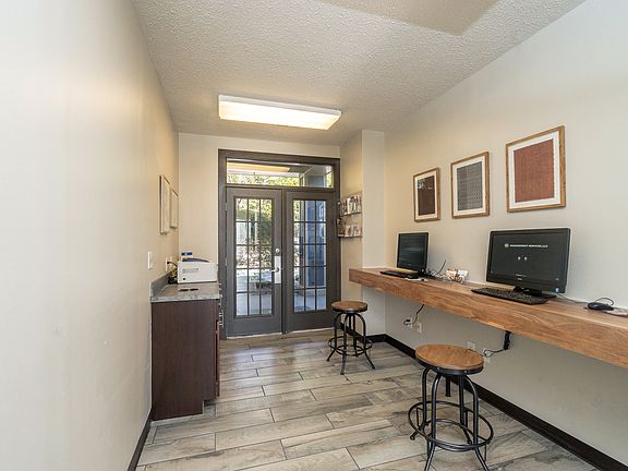 - Exterior features: Barbecue, Black or Stainless-Steel Appliances*, Built-In Bookshelves*, Business Center, Car Wash Center, Coffee Bar, Flexible Lease, Fully Equipped Kitchens, High Ceilings, On-Site Lake, On-Site Maintenance, On-Site Management, Package Receiving, Pet Friendly, Pet Park, Smart Locks, Sundeck, Valet Waste Service, View Type: Lake Views, View Type: View, View Type: Wooded Views, Wi-Fi in Common Areas