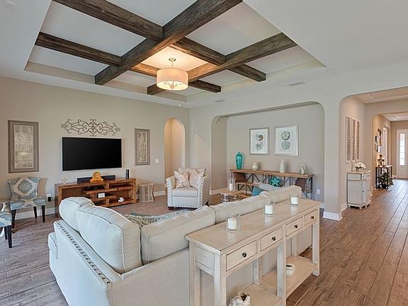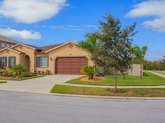 American Home Shield Warranty up to $600 paid for by seller! Popular CalAtlantic Hastings model in Windsor at Meadow Pointe. Move in ready, immaculate condition, priced less than building new! Lovely gated community. 4 bedroom 3 bath 3 car garage. Level 4/5 upgraded flooring of wood look tile in main living. 12 ft ceilings, with coffered wood beam ceiling. Gourmet kitchen with huge island, walk in pantry, crown molding, under cabinet lighting, glazed Ivory cabinets with soft close, double ovens, smart refrigerator, upgraded granite, lighting. Neutral colors throughout, new flooring in the 18Ã17 master with coffered ceiling, his/her closets. New carpet in the 3 bedrooms. Master bath has extra-large soaking tub, rain shower addition, bench, upgraded tile with plenty of natural light. Laundry room with sink and cabinets. Security system set up. Oversized, fenced corner lot, beautiful new landscaping, room for pool/pets & family to play. Screened Lanai with fan facing north for cool nights. Low HOA! Pasco taxes included in CDD. Easy access to 54, 56, 75 with wonderful things slated for this up-and-coming area.