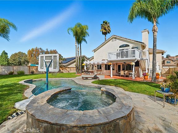 Welcome to one of the most sought-after streets in Temecula’s highly desired Vintage Hills community. Here you find charm, convenience, & comfort all in one. Tucked away on a quiet cul-de-sac, this beautiful 4-bedroom, 3-bath home offers an ideal blend of privacy, function, & everyday livability. With an open floor plan, the layout flows effortlessly, featuring both the open feel for entertaining & the cozy traditional spaces that make a house feel like home. Entering into the home you are greeted by the voluminous 2 story ceilings in the formal living & dining areas, separated from the kitchen & family room. The kitchen is bright & welcoming, showcasing white upper cabinets, blue-gray lowers, granite countertops & a stainless steel sink - framed by a picture window overlooking the backyard. The kitchen opens to the family room with its fireplace & a built-in media wall. A French door connects to the backyard, where you can enjoy an expansive covered patio with built-in BBQ area, featuring prep sink & bar stool seating. A sparkling pool & elevated spa, surrounded by lush lawn & fruit trees creates the perfect space for entertaining and relaxation. Completing downstairs is a den that can easily convert into a 4th bedroom, a full bathroom, & separate laundry room connecting to the spacious 3 car garage. Upstairs, the primary suite was designed with comfort in mind, featuring its own quiet, energy-efficient mini split system, that lets you set your perfect temperature without affecting the rest of the home; vaulted ceilings, a spacious ensuite bath with separate shower & tub, dual sinks & a walk-in closet. A sliding door provides direct access to an oversized balcony with southern exposure, peek-a-boo valley views, & stairs leading down to the backyard. There are 2 additional bedrooms with a shared bathroom & a large loft. Beyond the property, you’re just steps from top-rated schools: Vintage Hills Elementary, Temecula Middle School, Temecula Valley High School & Linfield Christian School. Vintage Hills offers resort-style amenities, including 2 pool areas & a clubhouse. Vintage Hills Park offers tennis & basketball courts, playground and a large grassy park. Bordering Temecula Wine Country, minutes from Old Town Temecula, Ronald Reagan Sports Park, & the Barons Market Center with local favorites. This home offers the perfect blend of location, lifestyle & opportunity, a home designed for making lasting memories in one of Temecula’s most loved neighborhoods.