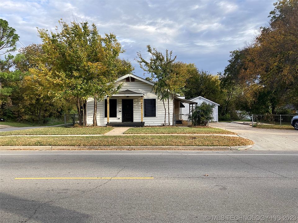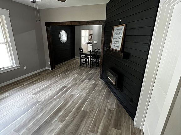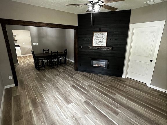 This delightful 3-bedroom, 1 1/2-bathroom house on a spacious corner lot has undergone meticulous remodeling. The new heating and air conditioning, fresh flooring, and contemporary kitchen cabinets with new stainless steel appliances, butcher block countertops create a stylish interior. A charming fireplace adds coziness to the living area, and the indoor laundry room provides convenience. Outside, an unattached garage, a safety-enhancing storm shelter, and abundant trees sitting on two lots, back lot could be sold or built on.