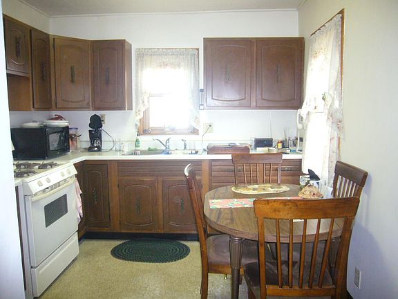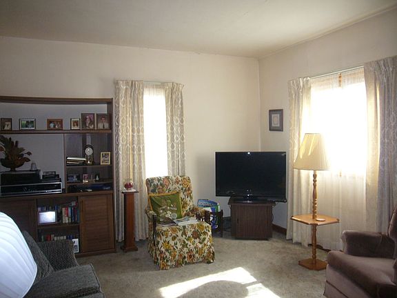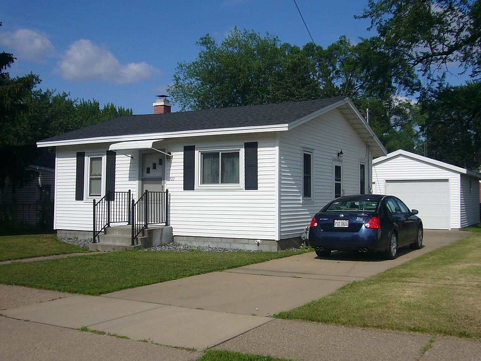 PERFECT SIZE & A GREAT INVESTMENT OPPORTUNITY! Two bedrooms with hardwood floors, cozy living room (may have hardwood flooring under carpeting), and eat-in kitchen with stove & refrigerator included. Basement family room with wood burning fireplace. Updates include vinyl siding & windows, roof shingles, furnace, central air, some electrical updating, & $7000 basement de-watering system. Nice backyard, detached oversized 1 car garage with opener. Heat costs include gas range. Call today for private showing.