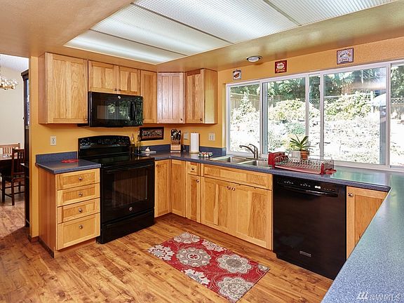 Nestled on a quiet cul-de-sac near Mill Creek Town Center and other shopping, this beautifully updated 4 bedroom/2.5 bath home is MOVE-IN READY. The main floor of this attractively landscaped tri-level home features an open living room with large bay window, vaulted ceiling and brick fireplace, a formal dining room, and an updated and expanded kitchen with oversized food pantry and lots of added storage and counter space. Beyond the kitchen stairs is the unique, self-contained lower-level, which can be an extension of your family living space, or a separate secluded, private space for kids to play, guests or home office. This level includes large family room/rec room warmed by an additional brick fireplace with a slider that opens to the deck, barbecue space and backyard, a cozy fourth bedroom or office, a laundry room/half-bath and a separate walk-in pantry room. On the upper level, find the master bedroom with large picture-window overlooking a terraced, fully-fenced backyard bordering a lovely greenbelt, master bath, and roomy walk-in closet. Also, are two more bedrooms and full bath. Other home enhancements include double-pane windows, laminate and tile flooring, roof rain gutters, garden tool shed, garage workshop cabinetry, updated bathroom granite counters, sinks and hardware, and lower level new interior paint.