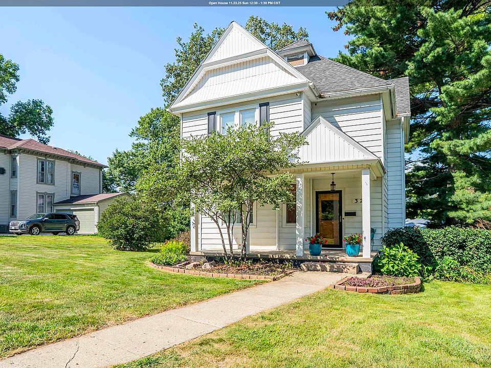 321 2nd Ave SE is a charming 4 bedroom, 1 3/4 bath home that beautifully blends original character with modern updates. Step inside the front entry to admire the stunning original woodwork on the staircase and flooring throughout the second floor. You will find plenty of room for everyday living and entertaining. The main floor features a formal dining room with beams built to give the feeling of a vaulted ceiling, two living spaces separated by a beautiful arched opening, and a flexible room perfect for a home office or playroom. The remodeled bathrooms add a fresh, modern touch. Both bathrooms were taken down to the studs and rebuilt. The convenience of main floor laundry makes daily routines a breeze. Recent updates give peace of mind and added comfort: new insulation, two furnaces, and replacement windows (2021), plus updated lighting, fresh paint, and low-maintenance vinyl plank flooring. A new deck extends your living space outdoors, where the landscaping has been refreshed with the removal of older trees and hedges and the planting of new maple and peach trees. The fire pit area with included gazebo frame and chairs is ready for evenings under the stars.Practical features include abundant parking with a detached 2-car garage plus carport, accessible from the alley. Major updates such as the roof (2010), sewer line (2008), and electrical panel (all completed by the previous owner) provide peace of mind for years to come.This home is move-in ready with the perfect balance of classic charm and modern comfort. If you are a fan of local history, you will appreciate that the bricks found in the landscaping are from the original Central Ave of Le Mars and the mural painted in the stairway to the basement was done by previous owner and long time Le Mars Community Jr. High Science Teacher, Mr. Tom Bohan.