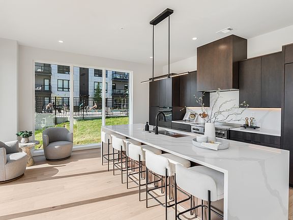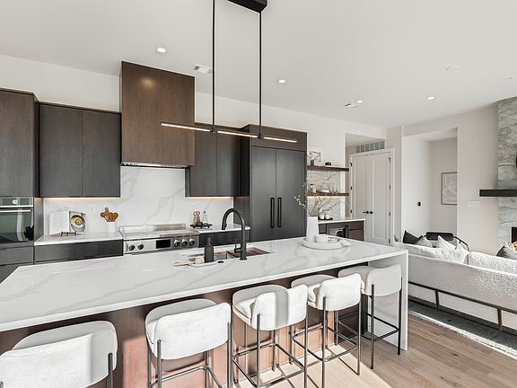 Inside, this home showcases premium finishes and modern elegance throughout. The chef’s kitchen features Fisher & Paykel appliances, Calacatta quartz waterfall countertops, and an open-concept layout flowing seamlessly into the living area with floor-to-ceiling windows, a gas fireplace, and a private terrace—ideal for entertaining or unwinding. The spa-inspired primary bath offers a zero-entry shower and a sophisticated, serene design.