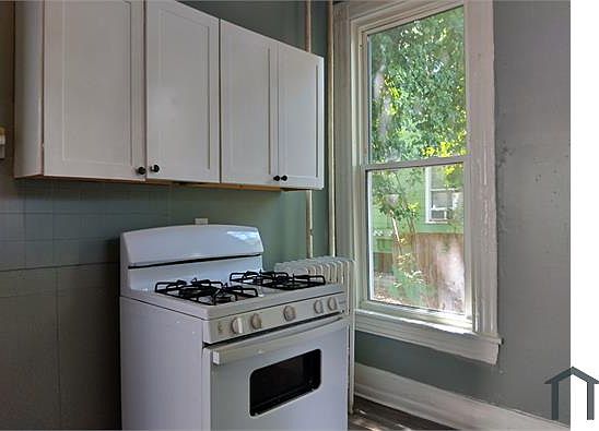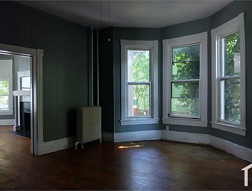 Beautiful first floor apartment with vaulted ceilings, bay windows, and architectural fireplace. Hardwood throughout. Spacious kitchen with white tile backsplash. $65/mo flat water fee. Stacked washer/dryer in unit. For more properties like this visit Affordable Housing.