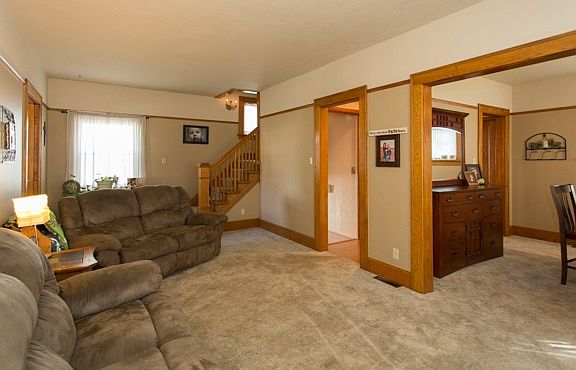 Super cute home in Waverly, plus - BONUS - 252' ICONIC shop/building ideal for hobbies or home based business! Awesome 2 STORY with character and charm including OAK staircase, CRAFTSMAN OAK trim, 4 season front porch, formal dining room, claw foot tub and more. PLUS - great updates throughout including updated and modern kitchen with solid surface counter tops, newer windows, roof, carpets, furnace/AC/Water Heater, bath updates and more! Basement includes shower/utility sink, and is perfect for bonus living space too! Nicely landscaped and fenced back yard, single garage and the extra shop (with electricity and gas heater) round out this great property! Location is super convenient too with city park and swimming across the street and golf course nearby too! Bonus - All Appliances are included!