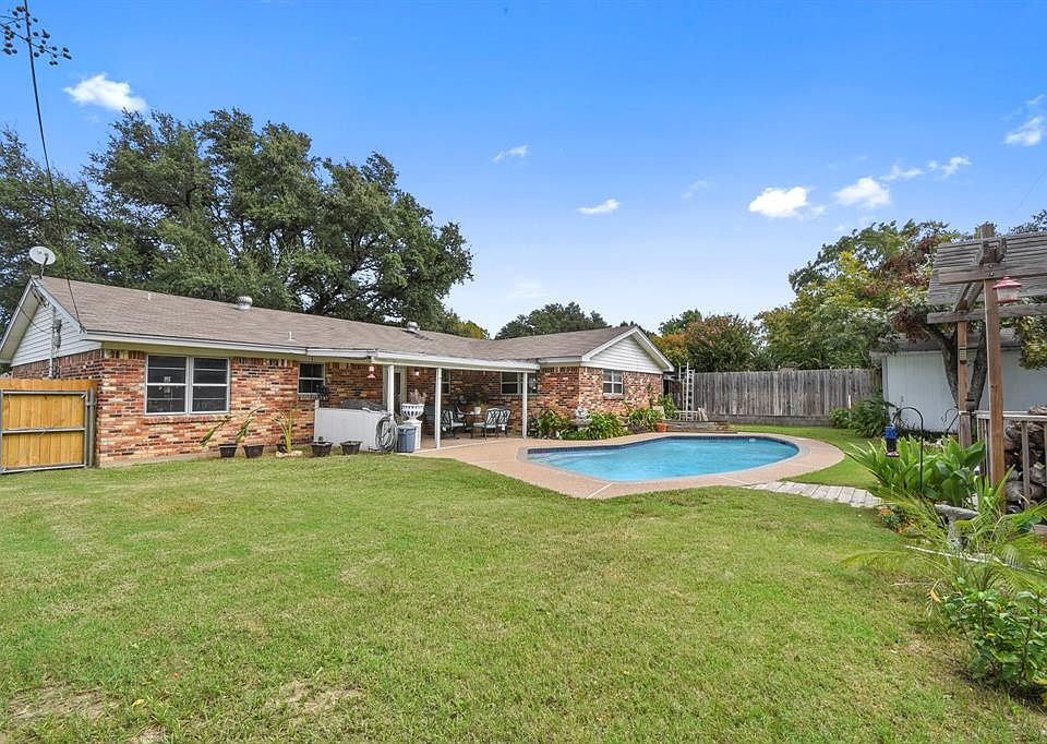 Charming single story ranch style home with a backyard Oasis. 4 bedrooms and two and a half bathrooms with a large open concept living, dining and kitchen. Great for entertaining. The backyard has an in ground pool, storage workshop with electricity and plenty of grass left too. Newly redone covered patio makes this backyard a great place to hangout! Convenient location near I-35 and I-20.