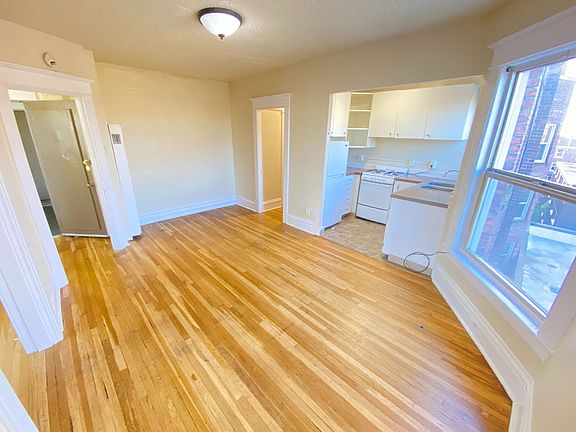 Casa del Rey #401 is a beautiful vintage TOP FLOOR corner unit located just off Broadway Ave in Capitol Hill. This spacious 1 bedroom features beautiful hardwood flooring, large bay windows that let in plenty of natural light, and a flexible floorplan with sliding pocket doors that section off the bedroom/den area. The east-facing windows offer lots of light without too much heat from the sun. The kitchen is equipped with a gas range/oven and plenty of built-in cabinetry and storage. We have a laundry facility in the building, as well as gated entryway and optional reserved parking off site (within 1-2 blocks, subject to availability).