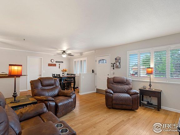 Charming home located conveniently in in the heart of Ault! This property features a large private lot with no neighbor behind, a dog run, garden beds, covered deck, chicken coop, lovely yard, a finished basement, and extra concrete for RV/Boat parking (no HOA). Many upgrades include: new interior paint, some new carpet, updated primary bathroom, plantation shutters, oversized garage, newer major systems (furnace, AC, water heater, and roof/gutters all less than 3 years old), updated kitchen with a double oven, newer cabinets, and granite countertops. Copy of previous Buyer's inspection report is available as well.