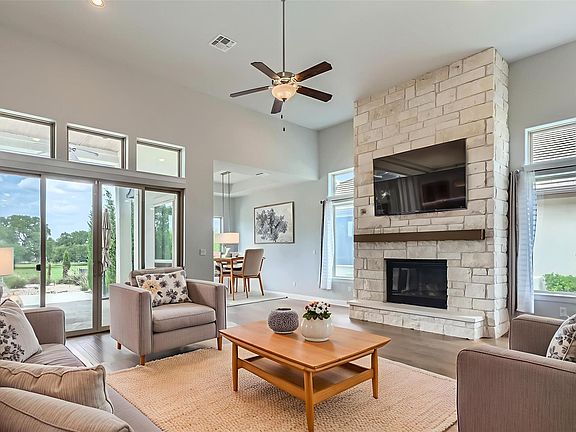 Experience refined living in the prestigious Cimarron Hills Country Club community, home to the renowned Jack Nicklaus Signature Golf Course. This elegant residence offers a blend of comfort and sophistication with three bedrooms, a dedicated study, and a spacious open floor plan ideal for both relaxing and entertaining. The well-appointed gourmet kitchen features upgraded stainless steel appliances, extensive cabinetry, and generous counter space - perfect for culinary enthusiasts. Tall ceilings and hard surface flooring throughout the main living areas create a bright, expansive ambiance, while plush carpeting in the bedrooms adds warmth and comfort. Recent interior paint enhances the home's move-in ready appeal. Situated on a premium lot backing to a peaceful nature reserve and the golf course, the home offers scenic views and added privacy. A staffed guardhouse welcomes residents and guests into this desirable, upscale community. Amenities include a luxurious clubhouse, resort-style pool, tennis courts, and a variety of country club membership options. Located in Georgetown and zoned to the highly rated Liberty Hill ISD, this property represents one of the best current values in Cimarron Hills. Quick close available - schedule your private showing today.