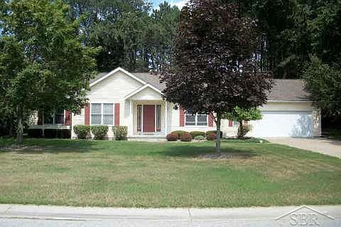 Immaculate, newer construction ranch in neighborhood near Hemlock schools and the park. Open floor plan with vaulted ceiling. Oak kitchen w/breakfast bar and large walk-in pantry. Garden view dining w/French doors leading to deck. Gas log fireplace in living room. Spacious master with large walk-in closet. Main bath with his n her sinks, oak cabinetry and wall of storage cabinets. Large deck with built in bench seats. 2 storage sheds. Beautifully treed back yard.