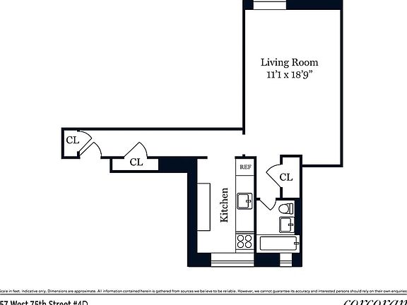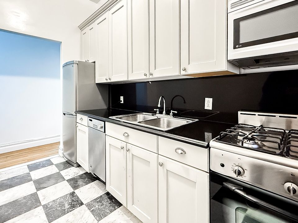 Renovated studio with separate kitchen New Exclusive! Get the best of prewar elegance with modern touches as La Rochelle, a classic doorman & elevator building built in 1898 and located on the corner of West 75th Street & Columbus Avenue Sunny south-facing studio apartment with open views Separate kitchen with dishwasher & microwave Three closets 4th floor Quiet, off-street Full tub in the bathroom Pet-friendly building Laundry on every floor 57 West 75th Street at the corner of Columbus Avenue