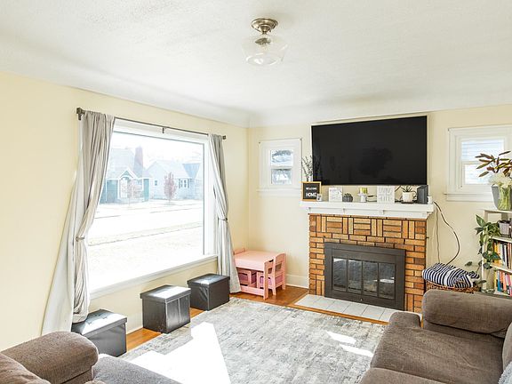 Welcome to this charming Cape Cod home with a cozy living room that features a wood fireplace and coved ceiling. The main floor showcases two bedrooms and a full bath, as well as a dining nook off the updated kitchen. Refinished wood floors, newer carpet, quartz counters, and stylish backsplashes give the home a fresh and modern feel. Vinyl windows on the main floor provide energy efficiency and plenty of natural light. The basement has a spacious family room, egressed bedroom, workroom, and laundry area. The home also offers off-street parking and a fenced backyard with a storage shed. This home has been well-maintained and updated, providing the perfect combination of charm and functionality. Don't miss out on this opportunity to own a beautiful Cape Cod home!