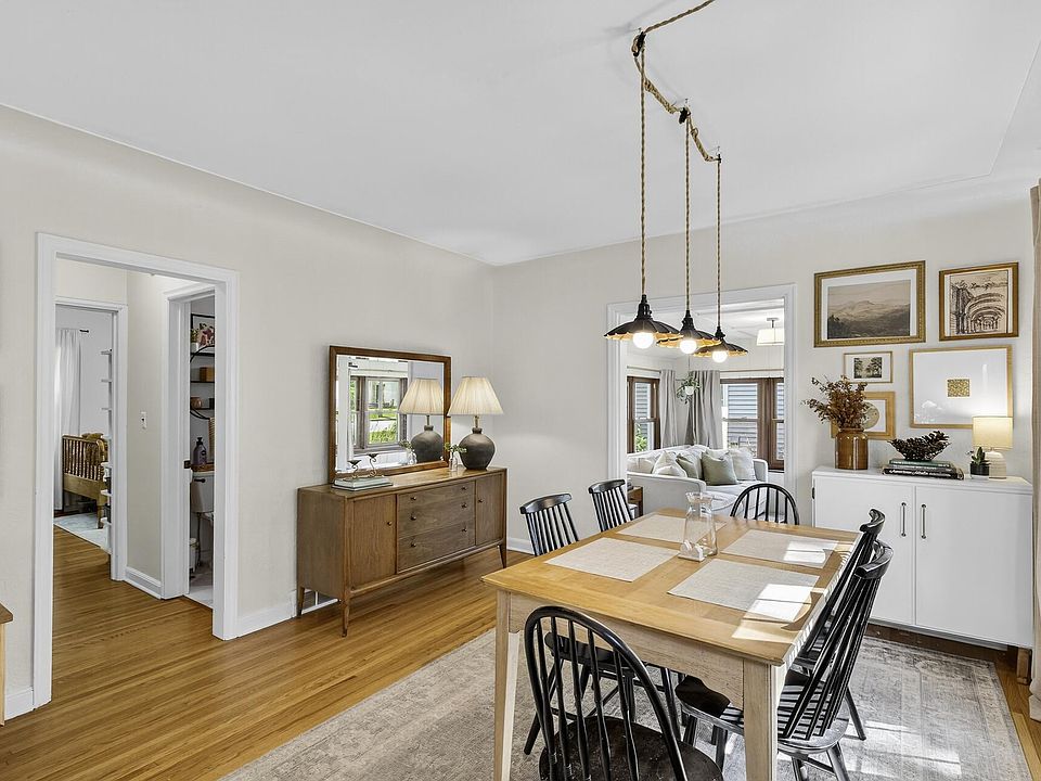 Charming 1 ½ story home in a great neighborhood near Lake McCarrons and Villa Park! Enjoy a bright 4-season porch with new carpet and 9 windows, an updated kitchen with granite counters and newer fixtures, and refinished hardwood floors. Spacious upstairs bedroom features newer carpet and tons of storage! The basement offers expansion potential, including a beautiful full bath with heated floors. Step outside to a fully fenced backyard, a new concrete patio, and a retaining wall—perfect for relaxing or entertaining. Close to several parks and walking paths!