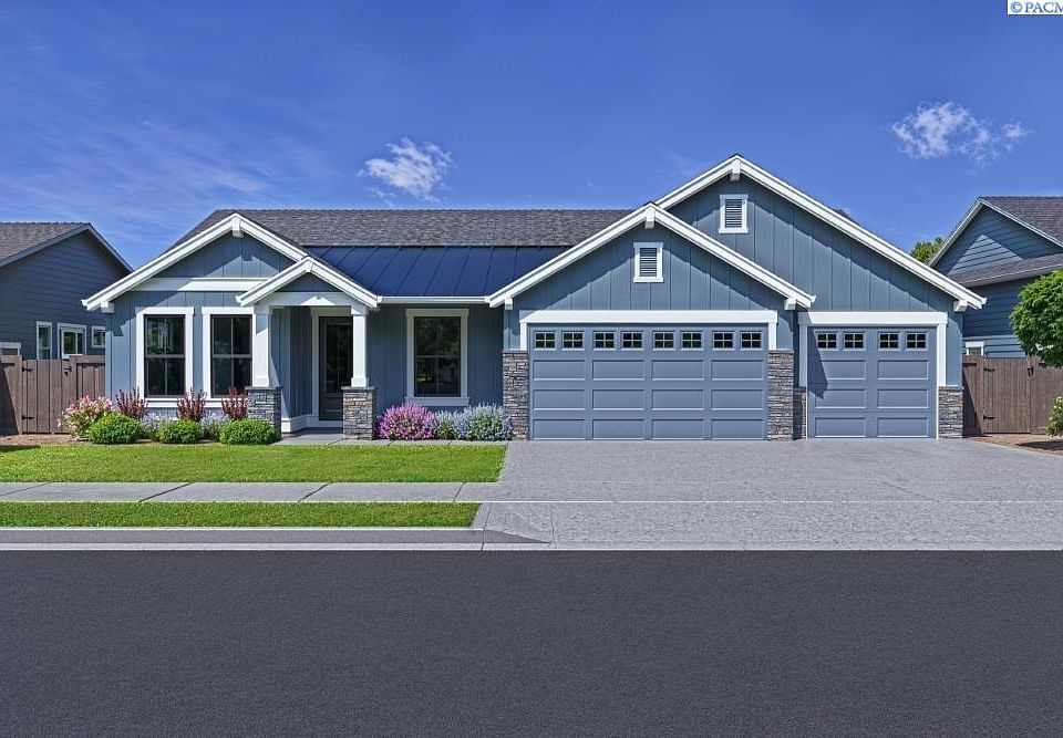 MLS# 287085 ~Buyer to receive a Buyer Bonus for using Preferred Lender; see site agent for more details.~ Westcliffe Heights is an esteemed Pahlisch Homes community, ideally situated alongside the scenic Badger Mountain Centennial Preserve in Richland, Washington. This premier neighborhood delivers an elevated lifestyle, featuring an array of resort-style amenities including a pristine swimming pool, an elegant clubhouse, a dedicated barbecue area, and an inviting fire pit. Carefully designed walking trails wind throughout the community, seamlessly blending with the natural surroundings to offer an exceptional balance of comfort, connectivity, and outdoor living. Perched on the picturesque slopes of Little Badger Mountain, Westcliffe Heights boasts stunning panoramic views from its available home sites. The community is located next to Washington State’s first certified organic winery, infusing the area with a unique local charm. Residents also enjoy easy access to outdoor recreation, highlighted by the renowned Badger Mountain hiking trail. With its captivating natural beauty and thoughtfully planned amenities, Westcliffe Heights is a true haven for nature lovers and outdoor enthusiasts. The 2571 sq ft Bentley plan is thoughtfully crafted with luxury and spaciousness in mind, offering refined living throughout. A welcoming entry foyer, flanked by elegant double doors leading to a private den, opens seamlessly into a sophisticated dining area. Soaring ceilings and an expansive great room complement the gourmet kitchen, creating an ideal space for both everyday living and entertaining. The primary suite serves as a serene retreat, featuring a spa-inspired bathroom with a generous walk-in shower and a stand-alone soaking tub. Guests will appreciate the comfort and privacy of their own suite, complete with a closet. Outdoor enthusiasts will enjoy the large, covered patio, which provides an exceptional setting for dining, relaxation, and entertaining. The stunning views from this property are truly a must-see. Estimated completion: January 2026. Stop by and tour our new model home at 359 Ascend Street in Richland: Friday-Sunday 11-5, Monday-Tuesday 12-5 VIRTUALLY STAGED PHOTOS OF A PREVIOUSLY BUILT PAHLISCH HOME. Front and backyard landscaping included.