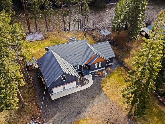 Tucked along 109 feet of scenic river frontage, this custom-built 2020 home is the perfect spot to unwind and enjoy the beauty of nature. With 2,452 sq. ft., 3 bedrooms, 2 bathrooms, and a bonus room, the open floor plan is designed for comfort and easy living. The home features vaulted ceilings that enhance the spacious feel, with all bedrooms located on the main floor for easy access and convenience. High-end finishes, including a metal roof and concrete siding, combine durability with modern style, while a woodstove in the living room adds warmth and charm. Set on half an acre in a quiet, private location along the Nile, this riverfront retreat offers the ideal setting for those seeking peace, fun and relaxation.
