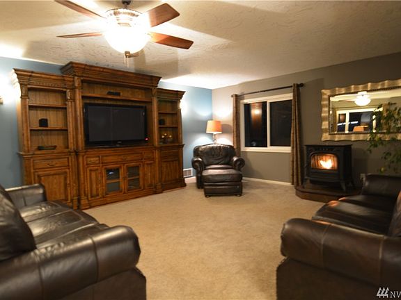 Quiet country living on 5 level acres with a view of Mt St Helens and Silver Lake. Beautiful home boasting 2262 SF, 3 bdrms w/oak floors, 2 bthrms, master bdrm on main with FP & French door to private deck, open floor plan, 408 SF living rm w/pellet stove, frml dining rm w/built-in buffet, spacious kitchen w/new granite counter tops, tile back splash, laminate floors, eating bar & walk-in pantry, utility rm, 425 SF exercise rm w/FP, 600 SF 2 car garage, 30x36 shop w/12 ft RV lean & fenced yard.