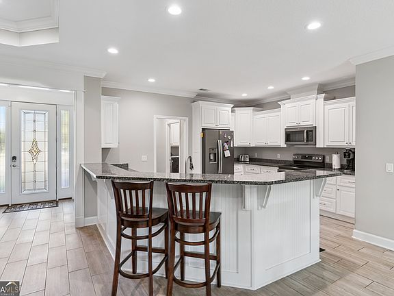 Sweet home with a view and more! This one story gem offers pond views, a spacious primary suite with dual vanities, a soaker tub, large tiled shower and walk-in closet, and a screened-in porch perfect for grilling, entertaining and relaxing. Built in 2022 by Josselyn Homes, this beauty includes 3 additional bedrooms and a full bath bringing the total to 4 beds and 2 baths, plus a 3-car garage, kitchen with a pantry and a laundry room! Additional items like the double convection oven, solar-powered water softener, 50-gallon water heater and built-in irrigation add comfort to everyday living. This gated community boasts privacy, serene spaces and wonderful amenities through its HOA. Located minutes from I-95 and just a short drive to Brunswick, Kingsland, the Golden Isles, Jacksonville and Savannah! Some featured amenities are a pool, tennis courts, fitness facilities, a clubhouse, community center, deep-water access to Little Satilla River and access to The Golf Club at Sanctuary Cove. Don't miss out on this coastal, lowcountry gem! Schedule a showing today!