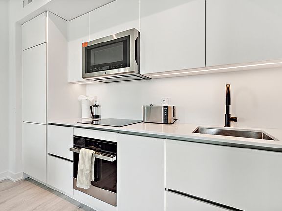 Floor-to-ceiling windowsPanoramic city viewsOpen-concept designModern finishesFully equipped kitchenElegant kitchen cabinetryStainless-steel appliances