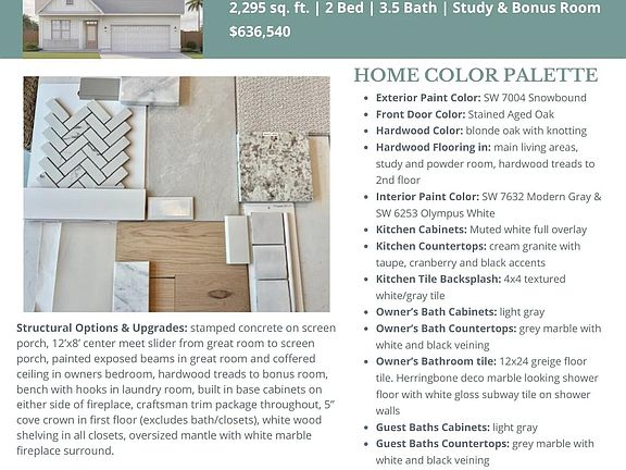 Riverlights and the Cypress Home Plan are a winning combination! The Cypress Home Plan has 2295 square feet of space with 2 bedrooms and 3 1/2 baths. Upgrades and options include stamped concrete on screen porch, 12'x8' center meet slider from great room to screen porch, painted exposed beams in great room and coffered ceiling in owners bedroom, hardwood treads to bonus room, bench with hooks in laundry room, built in base cabinets on either side of fireplace, craftsman trim package throughout, 5'' cove crown in first floor (excludes bath/closets), white wood shelving in all closets, oversized mantle with white marble fireplace surround.