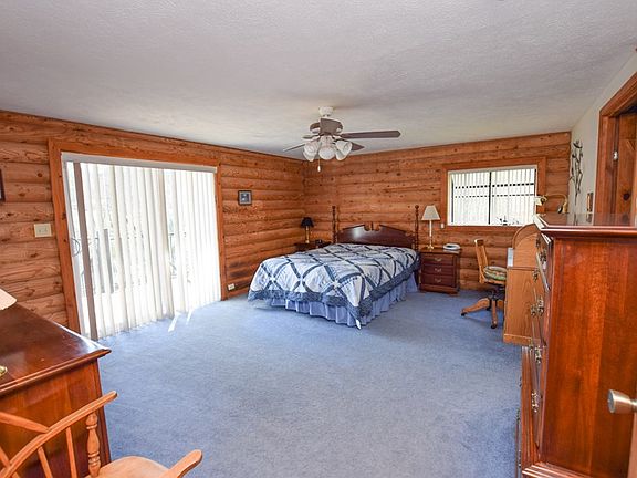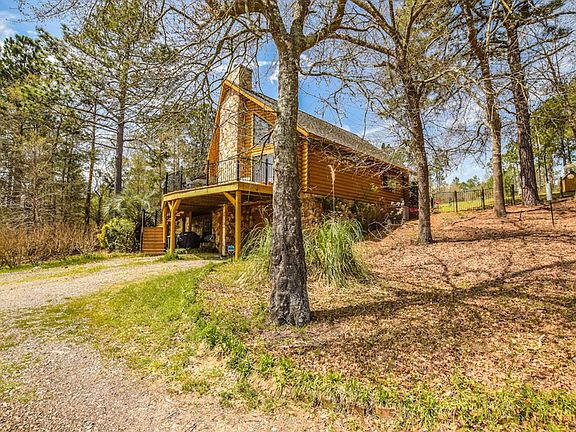 This incredible custom built log cabin has an abundance of natural light and a mountain home feel. With privacy, land, and gorgeous pond views brings endless possibilities! This 2 bedroom, 2 bath home has an open concept with views of the pond and nature from almost every window. The large loft could be used as an extra bedroom, office, play room, or room of your choice. The extra large attached 2 door garage also has a work shop area and extra space for water fun toys and fishing supplies. Enjoy entertaining or relaxing on the spacious deck overlooking the 25 acre pond and relax!
