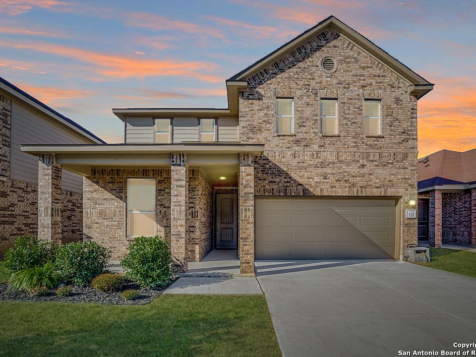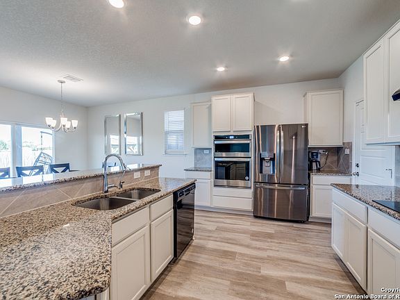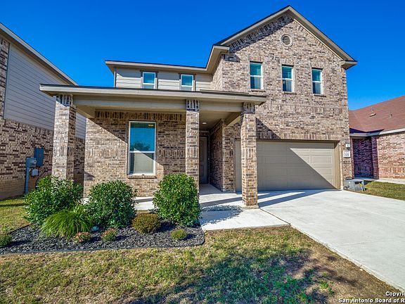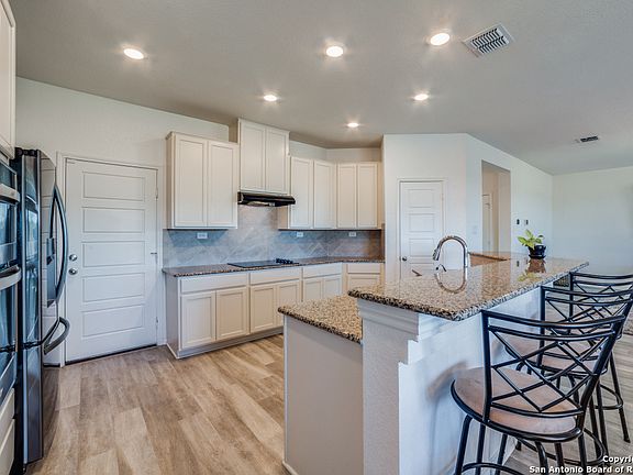 Check out the 3D tour! Discover this like-new, beautifully two-story home located in Dove Creek. The layout flows seamlessly between the kitchen, dining room, and living area, perfect for both everyday living and entertaining. The main areas boast beautiful wood-like laminate flooring, adding warmth and elegance. This home features 3 bedrooms, 2.5 bathrooms and Study providing ample space for work or use as a 4th bedroom. The kitchen is a standout feature of this home, boasting a spacious layout with a breakfast bar and elegant granite countertops. It includes beautiful 42-inch off-white cabinets that provide ample storage space. The modern stainless steel wall oven and microwave seamlessly integrate into the design, enhancing both functionality and style. The corner pantry includes plenty of built-in shelving. Upstairs, you'll find a large game room, perfect for movie lovers and entertainment, along with all three bedrooms and the utility room . The primary suite features a generous closet and a large bathroom with dual vanities, a separate shower, and a garden tub for ultimate relaxation. Access the serene backyard through a glass sliding door, where a covered patio and a charming gondola await, offering beautiful greenbelt views-ideal for outdoor gatherings or peaceful evenings. Conveniently situated near Potranco Rd and Loop 1604, this location offers easy access to major routes and local amenities such as shopping areas, restaurants and major stores.