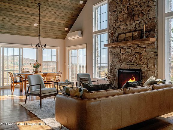 Set on 5.55 acres, the property includes a fire pit and a private trail looping through the woods, a personal invitation to explore without ever leaving home. Located between the pristine Rondout and Neversink Reservoirs, this pocket of the Catskills is known for its quiet beauty and easy access to hiking, swimming and fishing. Nearby towns like Livingston Manor and Ellenville offer cozy cafés, farm-to-table restaurants, and local markets that make weekend living both restorative and inspiring.