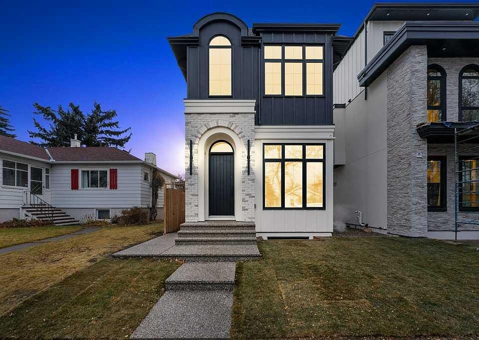 BRAND NEW Executive Detached Home in Mount Pleasant...steps from the ever-popular "Balmoral Circus Park"! Such an incredible "family" inner-city neighbourhood, with expanded public park areas and playgrounds! The architectural design of this masterpiece seamlessly blends contemporary "high-end" finishes with timeless elegance. Featuring an open-concept plan and large "triple-pane" windows that flood the space with natural light, this home promises to impress! Be welcomed to the foyer (with seating) and formal dining area (could be flex room) with a feature fireplace and a wainscotting detailed wall. The gourmet kitchen boasts a "waterfall quartz" island large enough for seating six guests! The high-end appliance package includes a gas cook-top and built-in appliances, plus a bar fridge. The lighting creates such ambience with the under valance lights on the cabinetry, as well as, on the island. Enjoy the great room with built-ins and under cabinet ambient lighting on either side of the TV area. Such an elegant space to entertain or just relax. A separate entrance has been created at the side door that leads to the 2 bedroom basement "illegal suite" (*legalization should be finalized within a week by City of Calgary). A private mud room with separate entrance to the home is adjacent. A powder room completes the main level. Ascend to the upper level where the master suite with vaulted ceilings and ambient lighting invites rejuvenation and relaxation (with its 5 piece "spa-like" ensuite, complete with a steam shower and tear-drop soaker tub). The additional two bedrooms are similar in size and share the main 4 piece bathroom. An upper laundry room completes this level! An "illegal" suite (*built according to City of Calgary "legalization" standards and awaiting final inspection) is the feature of the lower level. The area boasts 9 ft. ceilings, is spacious with an open-concept kitchen and living area, plus two bedrooms and a full 5 piece bathroom (dual sinks). In-floor heating throughout basement! Luxury wide vinyl plan flooring (floating) adorns the space. A storage area, plus a separate laundry with full-sized washer and dryer complete this level! The fully fenced yard is landscaped, with an oversized deck. A detached garage is insulated and drywalled, with gas line and water outlet. This "family-friendly" special neighbourhood awaits you. Let us give you a tour of this brand new masterpiece!