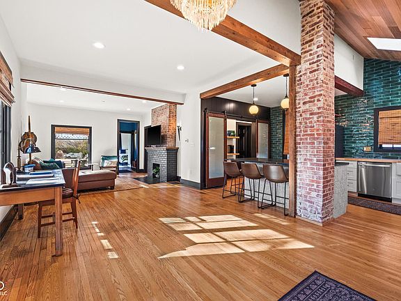 Originally built in 1860 as the home of Franklin Booth, the celebrated illustrator for James Whitcomb Riley, this historic Carmel residence has been completely reimagined for modern living while preserving its timeless character. Meticulously renovated in 2020, the property now combines rich architectural history with sophisticated design and top-tier craftsmanship-all within walking distance of Main Street, the Monon Trail, and the Carmel Arts & Design District. This home is being sold fully furnished and completely turnkey, making it ideal for an Airbnb, short-term rental, or executive residence. Every piece-from furnishings and decor to kitchenware, linens, and essentials-has been thoughtfully curated to match the home's style and ensure it is ready for guests from day one. Inside, the main level showcases original hardwood floors, exposed brick, reclaimed wood accents, and handcrafted finishes throughout. The chef's kitchen boasts custom cabinetry, butcher block counters, a honed granite island, and modern appliances-perfect for entertaining. Two bedrooms and two full baths complement a spacious living area and large laundry room, offering both comfort and practicality. A private staircase leads to the upper-level residence, featuring two additional bedrooms, a full bath, a bright kitchen, and an inviting living space. This upper unit provides flexibility for guests, extended family, or supplemental rental income. Whether you envision it as a private residence, a multi-generational home, or a fully operational Airbnb, this one-of-a-kind property offers an extraordinary opportunity to own a piece of Carmel's history while embracing the modern conveniences and energy of its thriving downtown district. COMPLETELY FURNISHED and ready for immediate use-this is truly a turnkey offering.