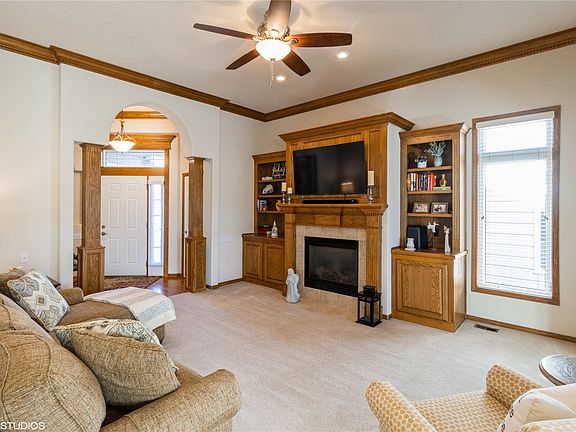 Schedule your visit to this pristine townhouse in the NE part of Ankeny, soon. Beautiful crown molding and an arched entry leads you into the property with over 2,600 sq ft of finish. This townhouse features two fireplaces, a sunroom, deck, dining area, breakfast bar, main floor master, laundry room, pantry, second bedroom and bath. Proceed downstairs to another family room with large windows leading outside to the patio. The third bedroom and bath complete the lower level with a huge amount of storage space. Every detail has been taken care of in this property. Enjoy the location, and the relaxed lifestyle with your lawn and snow removal being taken care of for you.