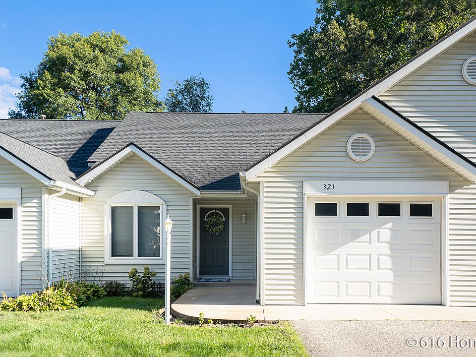 Welcome to 321 Nestlewood Dr! Unlimited convenience awaits in this well maintained, move-in ready condo. Located on a quiet cul-de-sac on Holland's North side, this open and airy condo has tons of natural light, vaulted ceilings, and main floor laundry. New vinyl flooring and carpet have been added as well as a new shower! The association replaced the roof in 2023 and added vinyl siding as well. This unit also has an attached garage and a spacious 50'' high crawl space, perfect for storage! Located near shopping, dining, bike baths and minutes from Lake Macatawa and Lake Michigan. Downtown Holland is only a few minutes drive as well! Schedule your showing today!