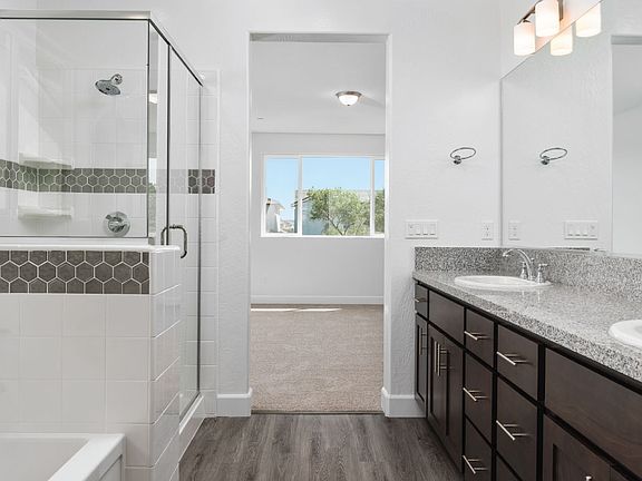 Welcome to this captivating 2-story open concept home, where every detail has been carefully curated to create a truly remarkable living space. The kitchen, adorned with slate stained shaker cabinets, is a chef's dream, complete with a convenient two-bin trash pullout built into the island. Downstairs, you'll find a bedroom and full bathroom, as well as a study area off the great room, perfect for productivity or relaxation. Step outside to enjoy the covered patio, an ideal spot for unwinding or entertaining. Upstairs, the laundry room is equipped with a sink and cabinets, making chores a breeze. The primary suite features a large window and a generous walk-in closet. Additionally, this home offers a versatile loft area, allowing you to create a home office, reading nook, or play area. Amenities: Covered Patio, Dedicated Office/Work Area, Open-Concept