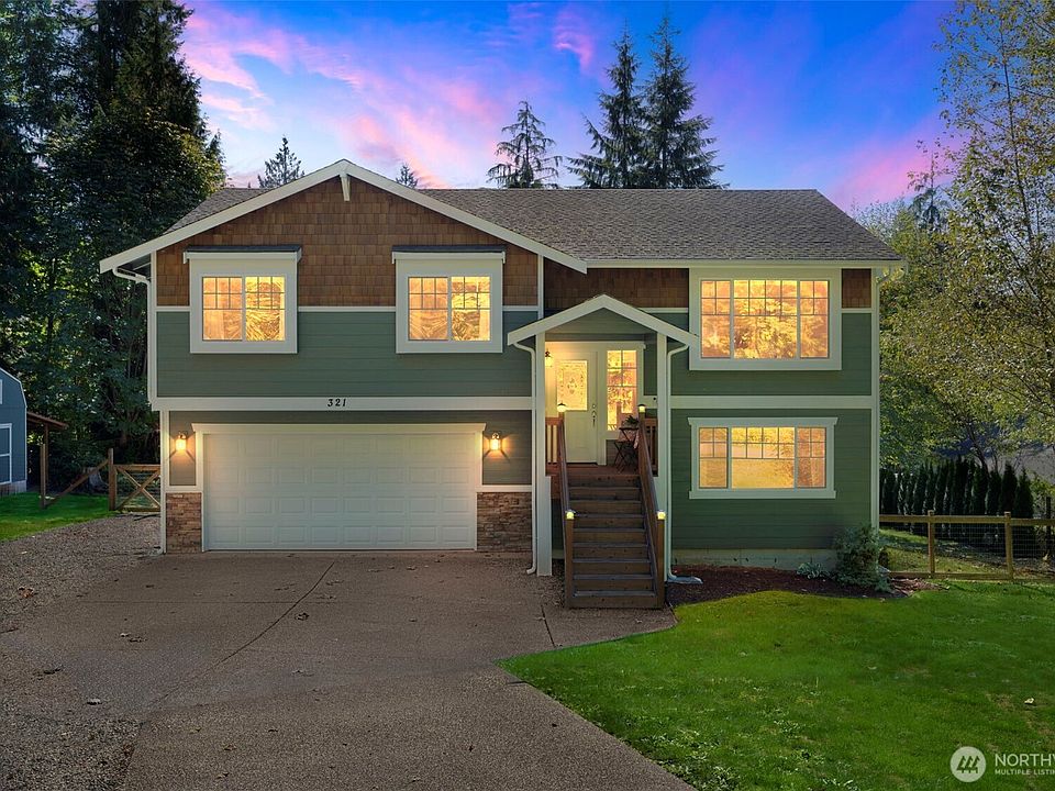 Beautifully updated and meticulously cared for, this home sits on 1.75 private acres designed for comfort, entertaining, and adventure. Enjoy upper and lower 40’x10’ Trex decks, a patio and fire pit area, privacy trees, fruit trees, and 0.5 acres of custom-built trails. Inside features 3 bedrooms plus an office/library, 2.75 baths, and a vaulted living room with a cozy fireplace. The kitchen shines with quartz counters, stainless steel appliances, a gas range, and a custom backsplash. Extras include a water purification system, generator, RV parking, and a lofted shed. A true oasis—welcoming, functional, and perfectly maintained.