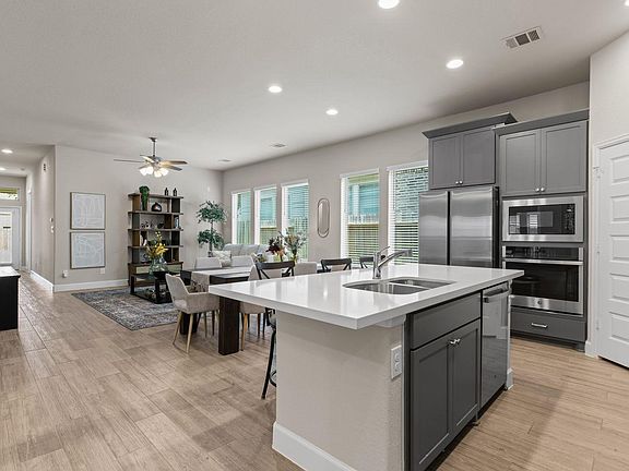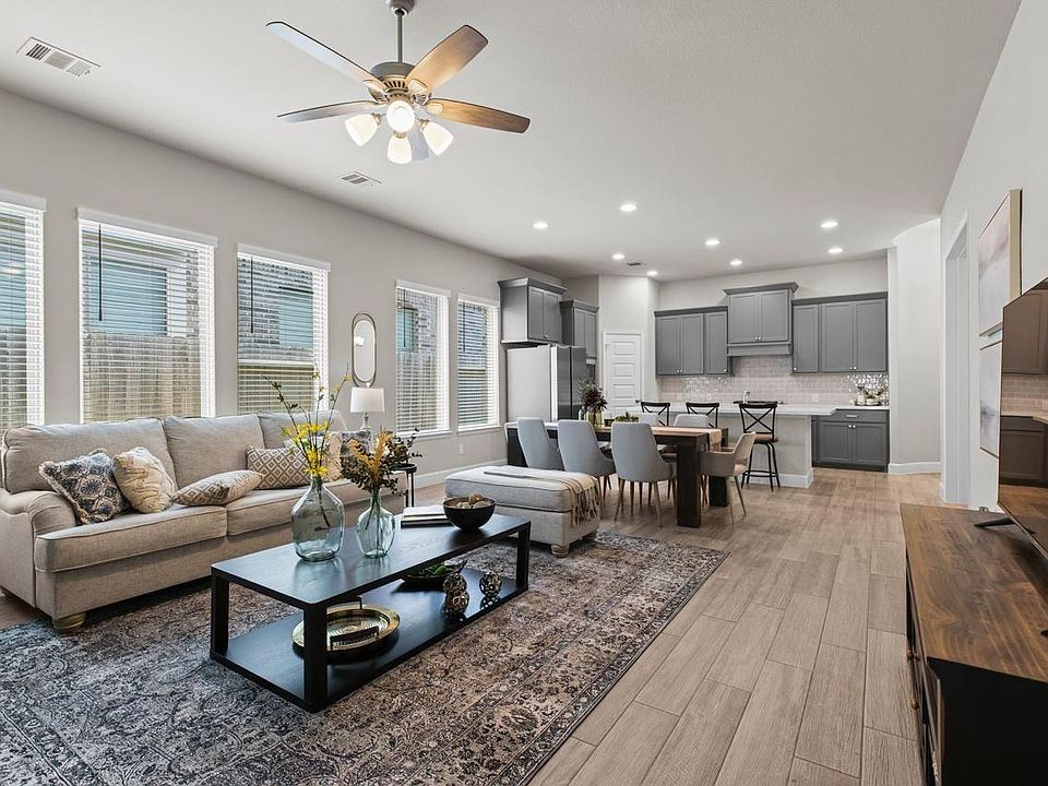 Step inside and feel right at home this property comes FULLY FURNISHED. The thoughtfully designed layout welcomes you with a functional entryway that flows past a spacious utility room. Just off the hall, a private home office with elegant French doors creates.The expansive family room connects to the dining area making this space both inviting and functional. Tucked away at the back of the home, the secluded primary suite offers a peaceful retreat. The en-suite bath includes dual vanities, a generous walk-in closet, a linen closet, and a large glass-enclosed shower. Each secondary bedroom features its own walk-in closet, making this home ideal for families, guests, or even short-term rental opportunities. Step outside to a covered backyard patio for relaxing mornings or cozy evenings. Located in the vibrant Woodforest community, you'll enjoy a wide range of amenities including parks, trails, pools, and golf everything you need for comfortable, turnkey living.